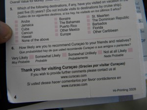 Je mentionne ces observations comme des leçons de leadership parceque la base du leadership est l’information. Voici donc, une méthode peu couteuse de reccueillir de l’information qui permet aux autorités touristique de Curacao de mesurer le degré de satisfaction de sa clientèle, de connaitre ses compétiteurs et de faire des perspectives de marketting.